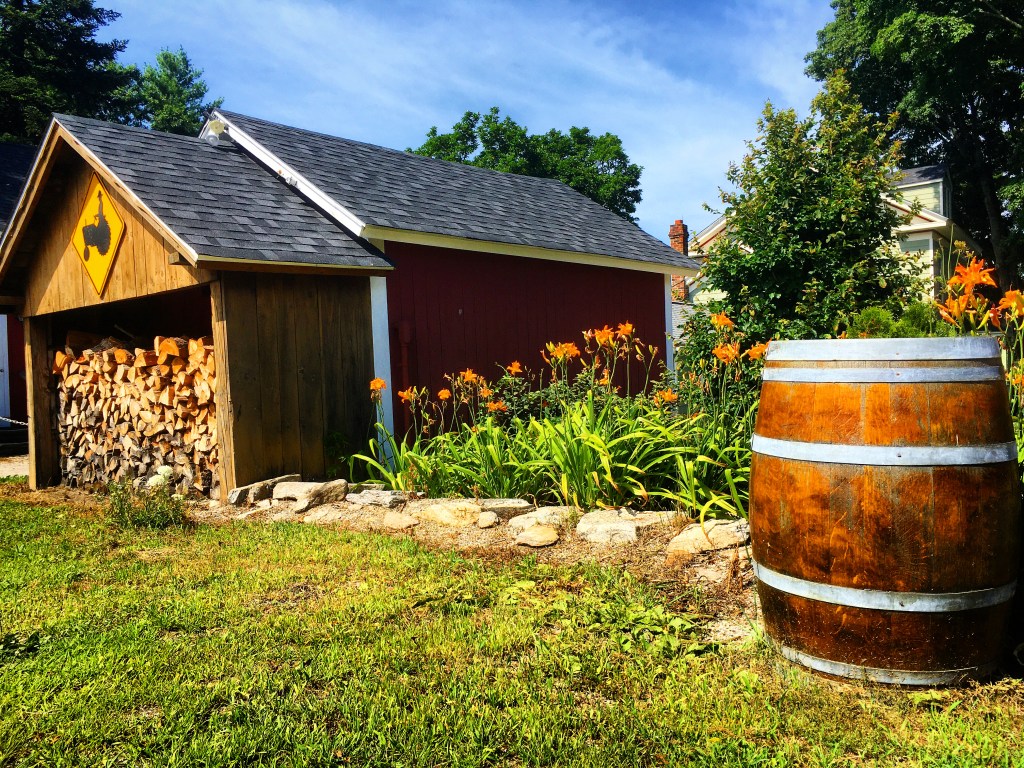 It’s a lovely property, located in Shelton. There’s a winding path past multiple buildings (it’s a working farm) where you can see old tractors, blooming flower beds, and strategically placed wine barrels. I was seated outside and because of the restrictions was not able to look around the actual winery/tasting room or wander the grounds – which was a real shame as the leafy vines were fair begging to be explored closer! They have an upper patio that is shaded by trailing vines, and multiple lower level areas, one including an outdoor fireplace and a large picnic pavilion.