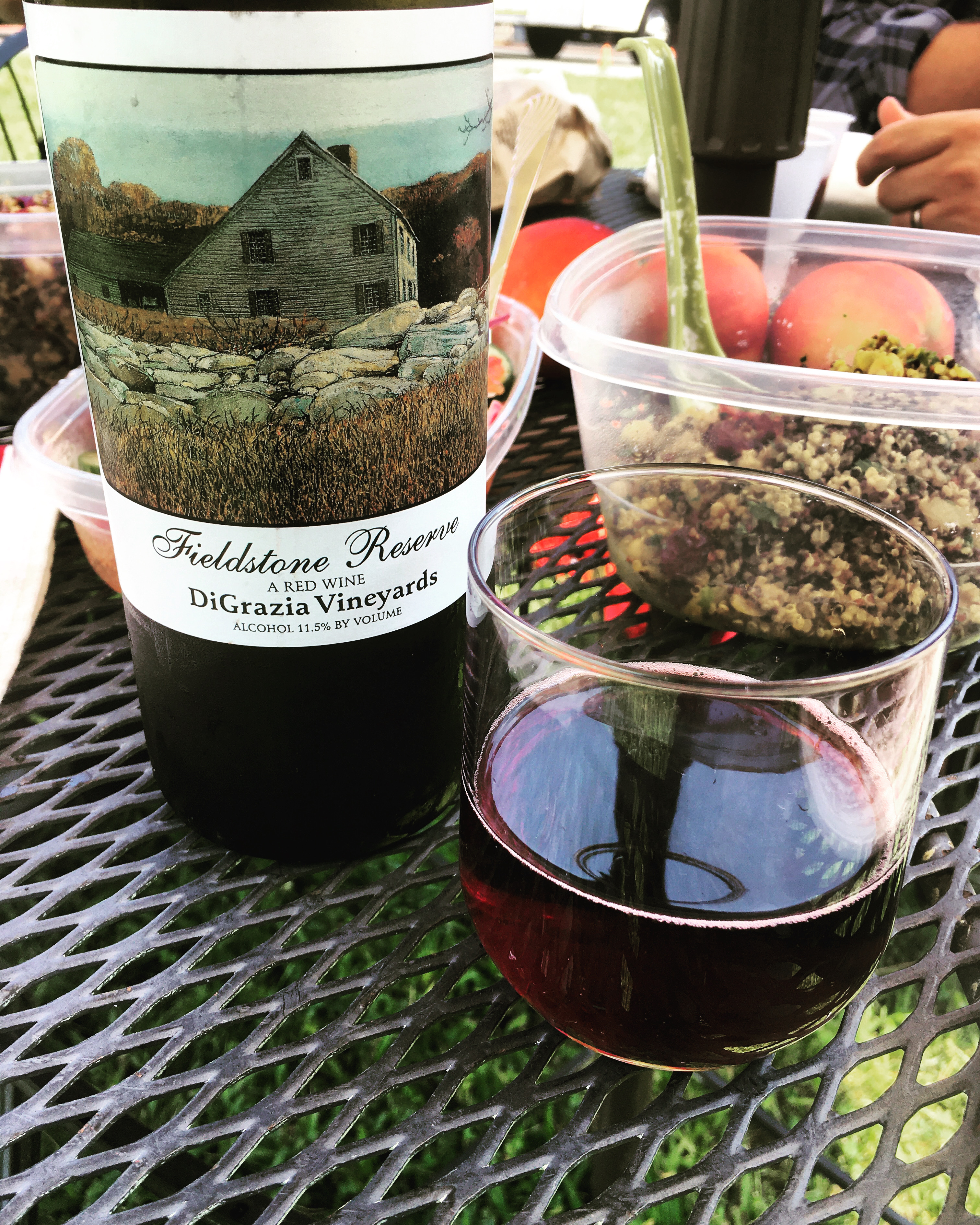 We had a bottle of their Fieldstone Reserve, a red wine at 11.5%abv, served slightly chilled. It’s dry but has a little bit of spritz, and while it’s made with grapes, there was a prominent cranberry note to it. It was an excellent pairing for the picnic we brought.